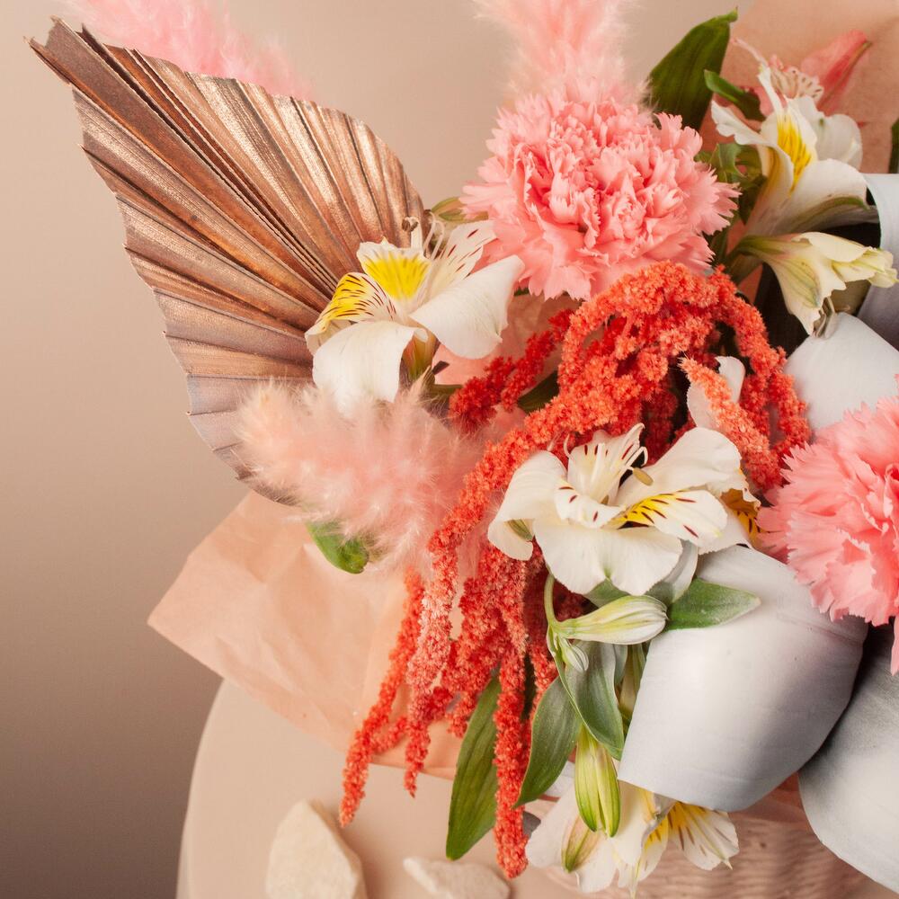 Гвоздики, Лизиантусы, Розы, Тюльпаны