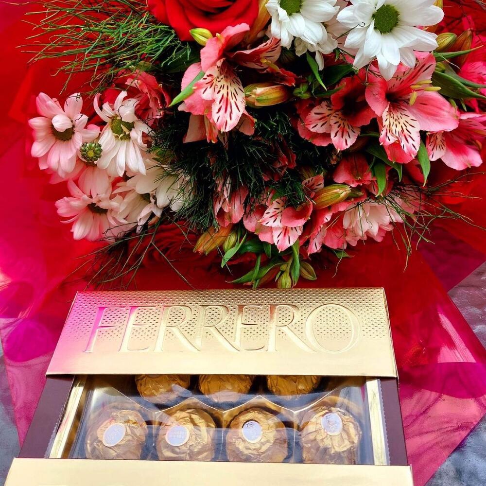 самый нежный и красивый букет цветов висящего качество порадует любого, а в дополнение шоколад фереро поднимит настроение
