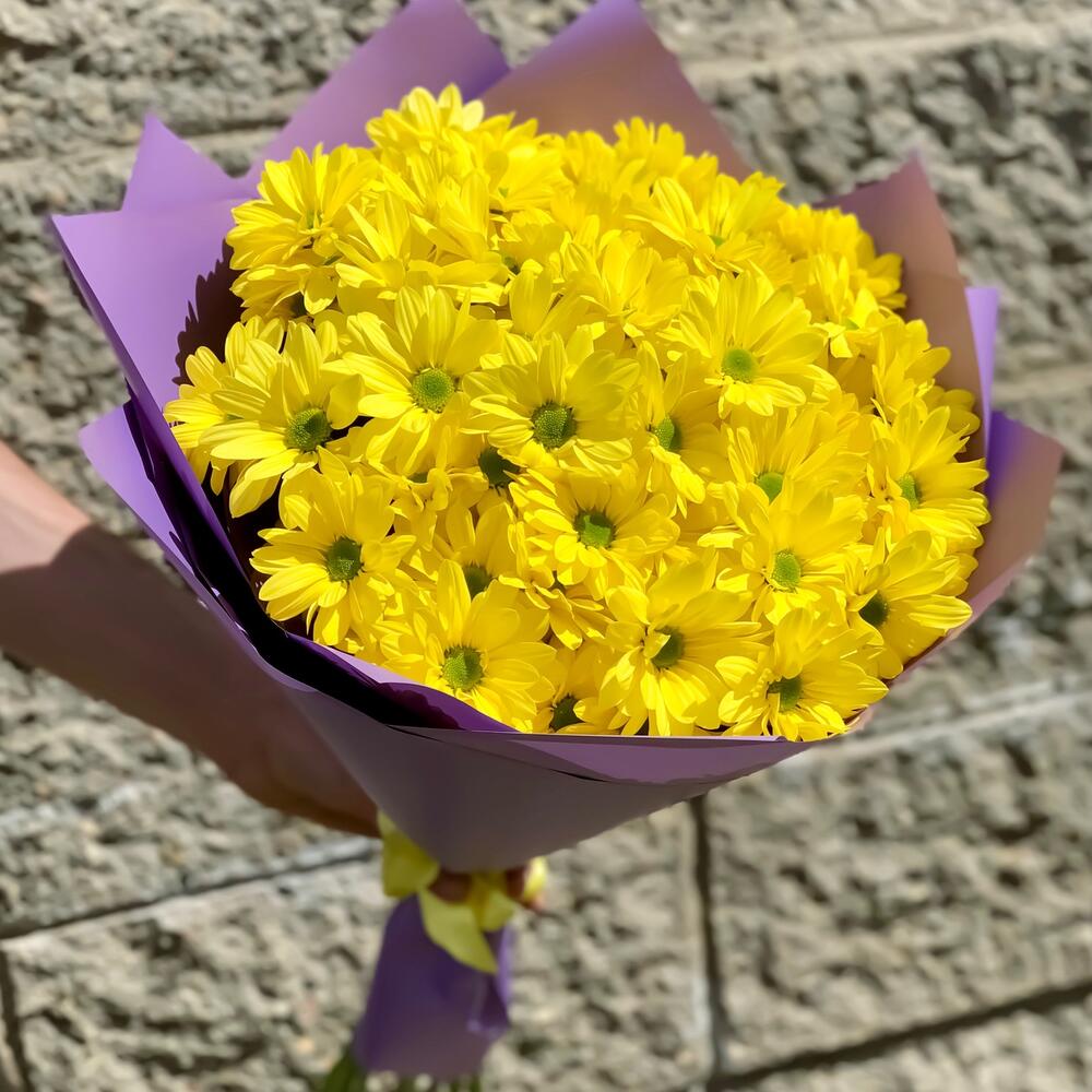 Букет из кустовой хризантемы, альстромерии и эустомы "Эйсид"