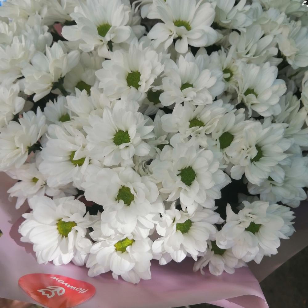 Шикарный букет из белых хризантем подарит настроение не только вам, но и вашим близким.