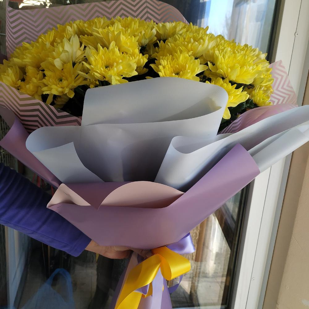 Стильный шикарный букет из кустовых хризантем надолго оставит неизгладимое впечатление на получателя