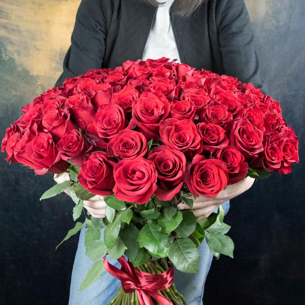 Метки: 101 роза, Красные розы, от 5000 руб, Роза 70 см
