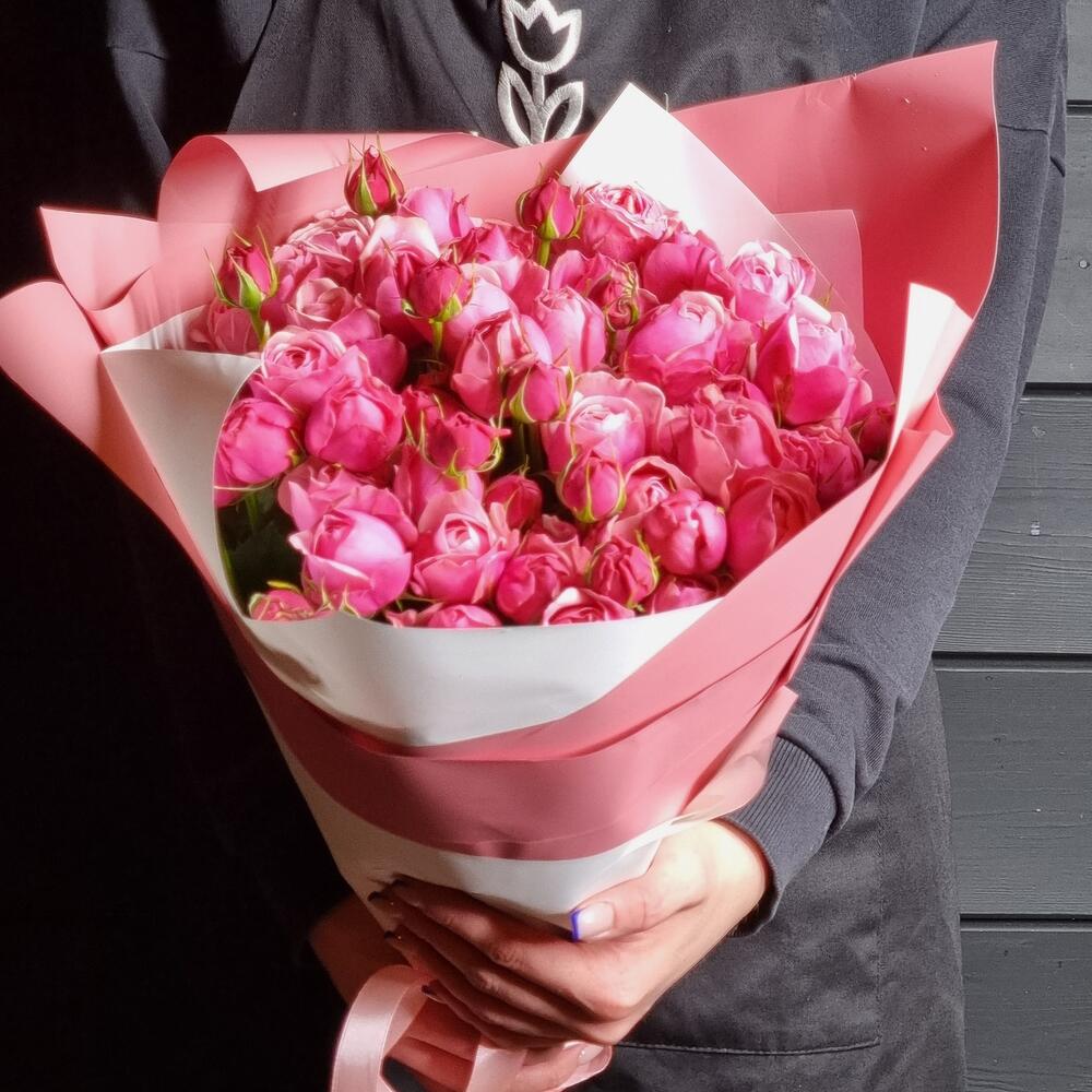 Лента атласная – 1 шт.Дизайнерская упаковка – 1 шт.роза силва пинк пионовидная – 11 шт.