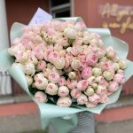 Тишью – 1 шт. Атласная лента – 1 шт. Пионовидная кустовая роза – 35 шт. Дизайнерская упаковка – 1 шт.