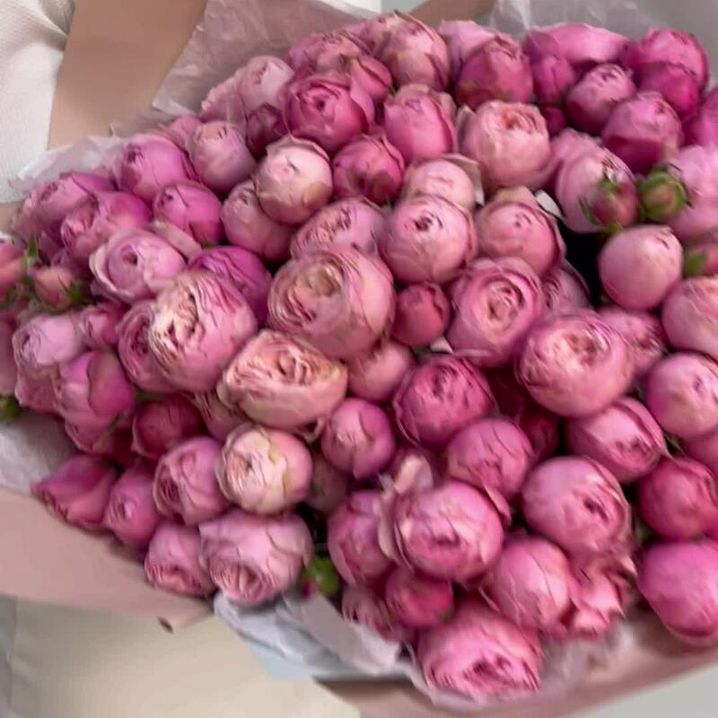 Упаковка дизайнерская – 4 шт.Пионовидная кустовая роза – 41 шт.Тишью белое – 4 шт.