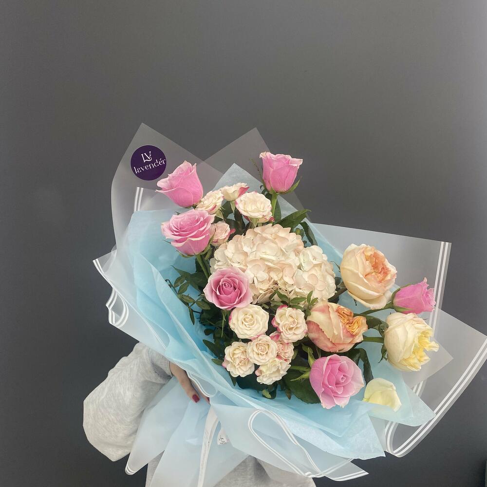 Альстромерии, Кустовые розы, Лизиантусы, Пионовидные розы, Розы, Ромашки