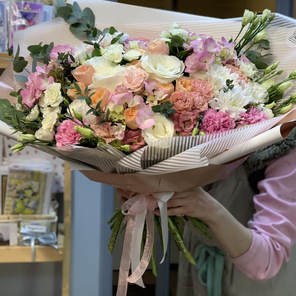 Категорий: Гвоздики, Гортензии, Кустовые розы, Лизиантусы, Розы, Хризантемы