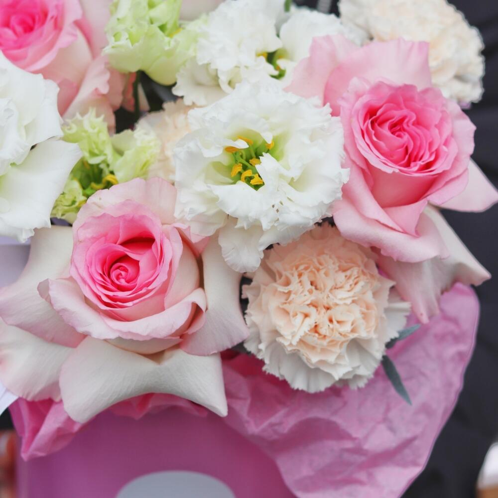 Категории: Гвоздики, Лизиантусы, Розы, Тюльпаны