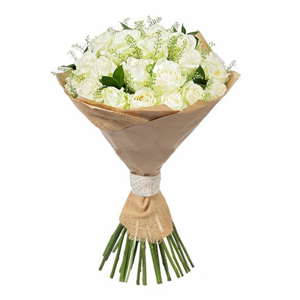 Лента атласная – 1 шт.бумага крафт – 1 шт.роза белый – 25 шт.