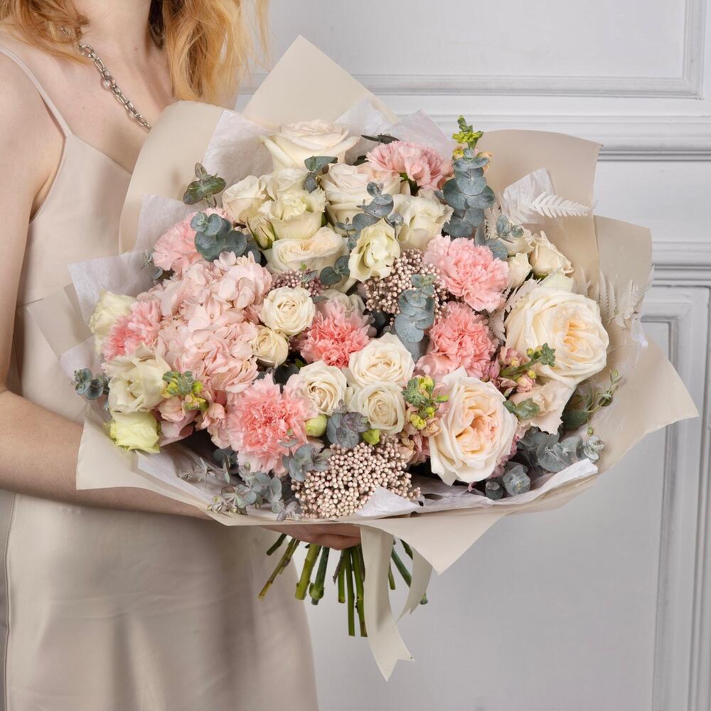 Категорий: Гвоздики, Гортензии, Кустовые розы, Лизиантусы, Пионовидные розы, Розы