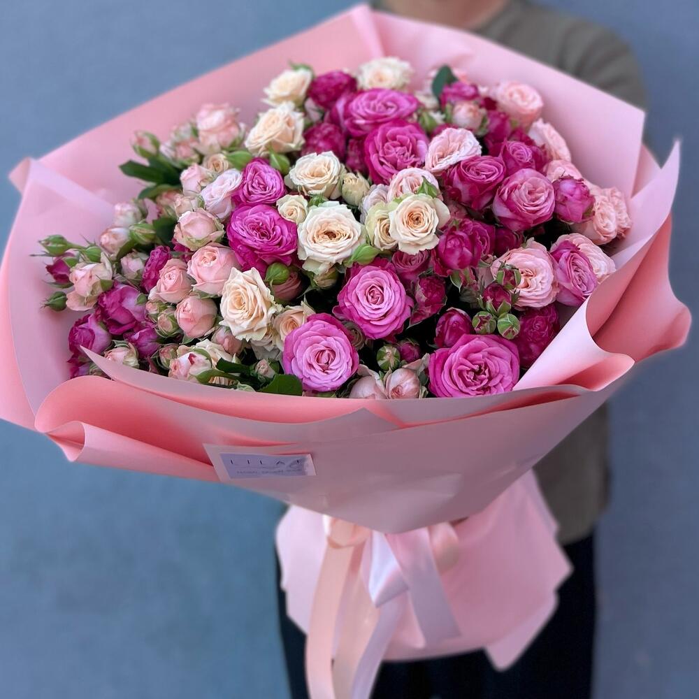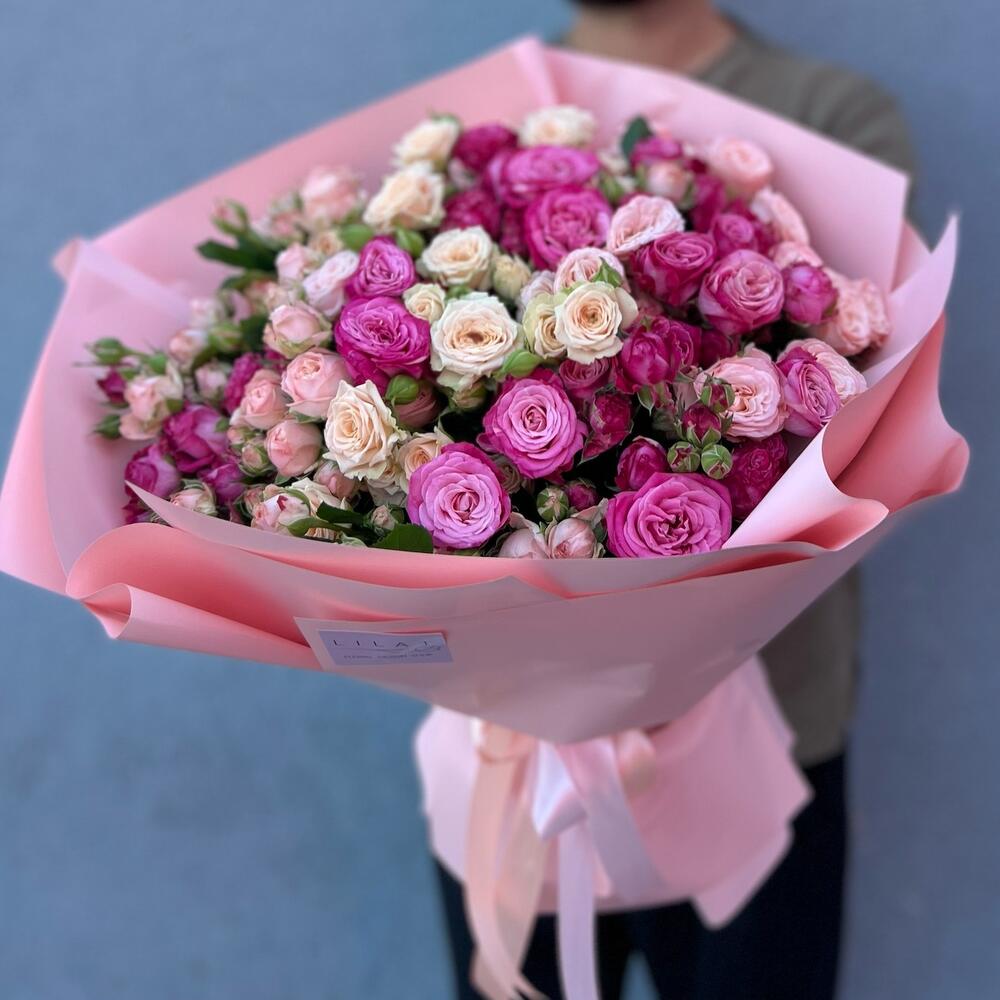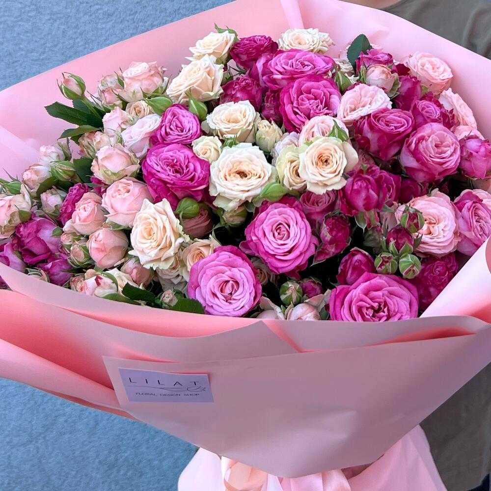 Гвоздики, Кустовые розы, Пионовидные розы, Розы