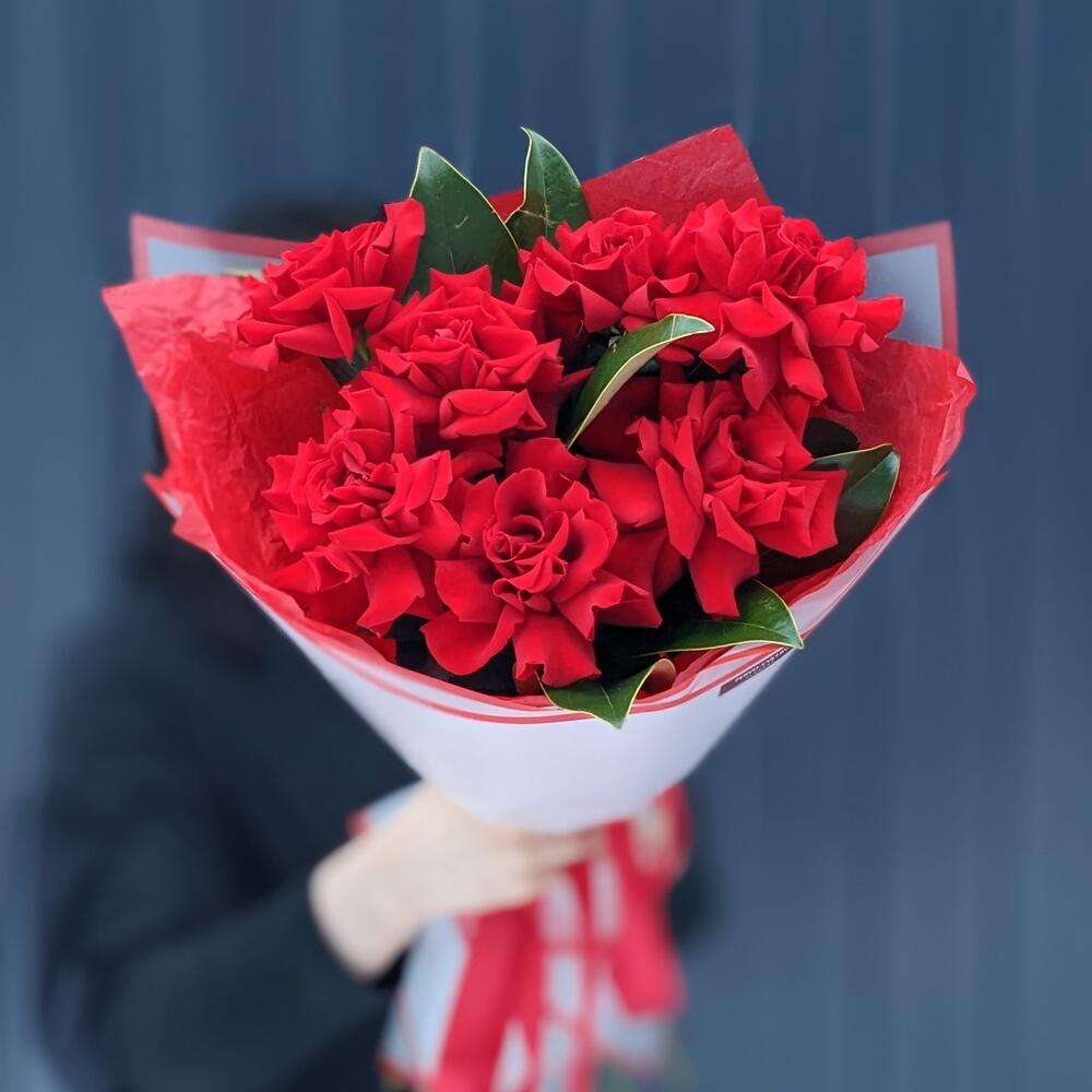 Французская роза – 7 шт. магнолия ветка – 2 шт. Упаковка дизайнерская – 1 шт.